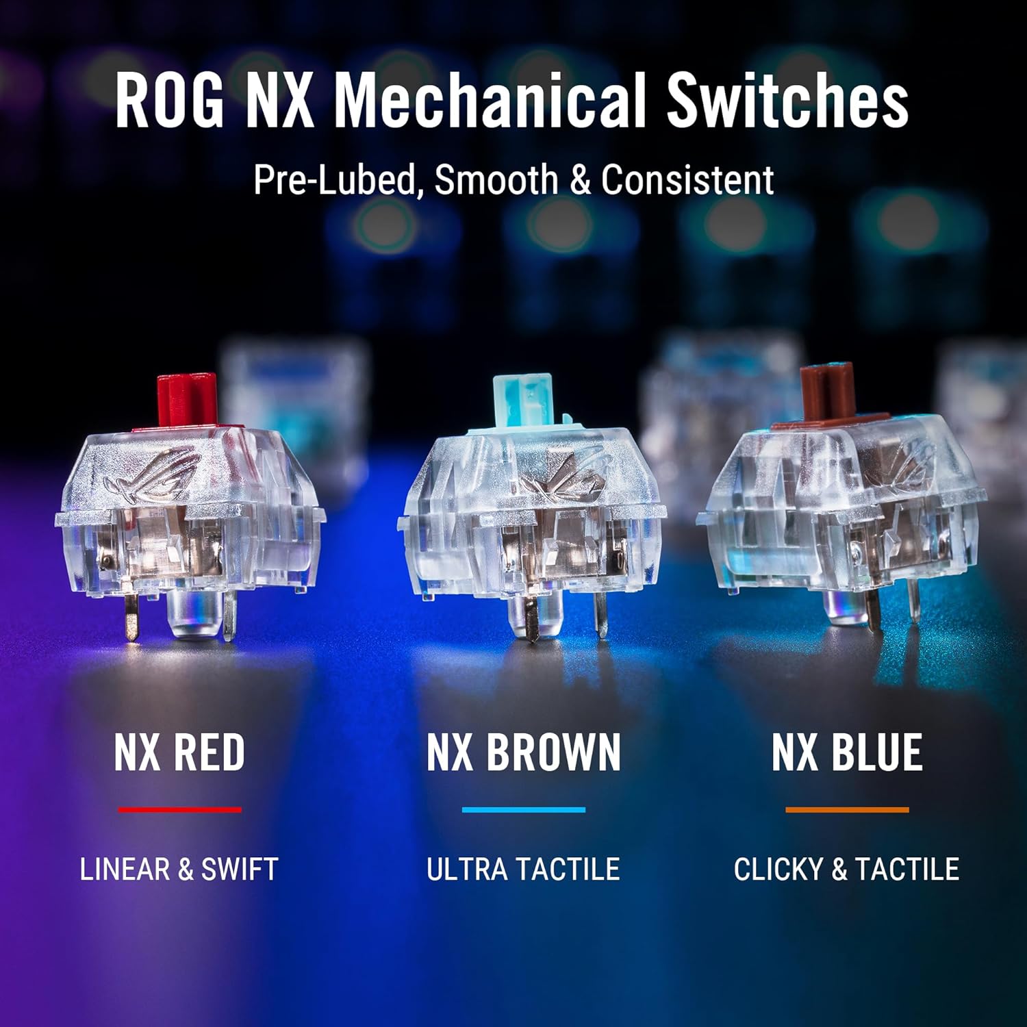 - Hot-swappable ROG NX mechanical switches: Pre-lubed switches for smoother clicks and eliminates bouncing noises respectively; fast actuation and ROG-tuned force curves provide great keystroke feel and consistency